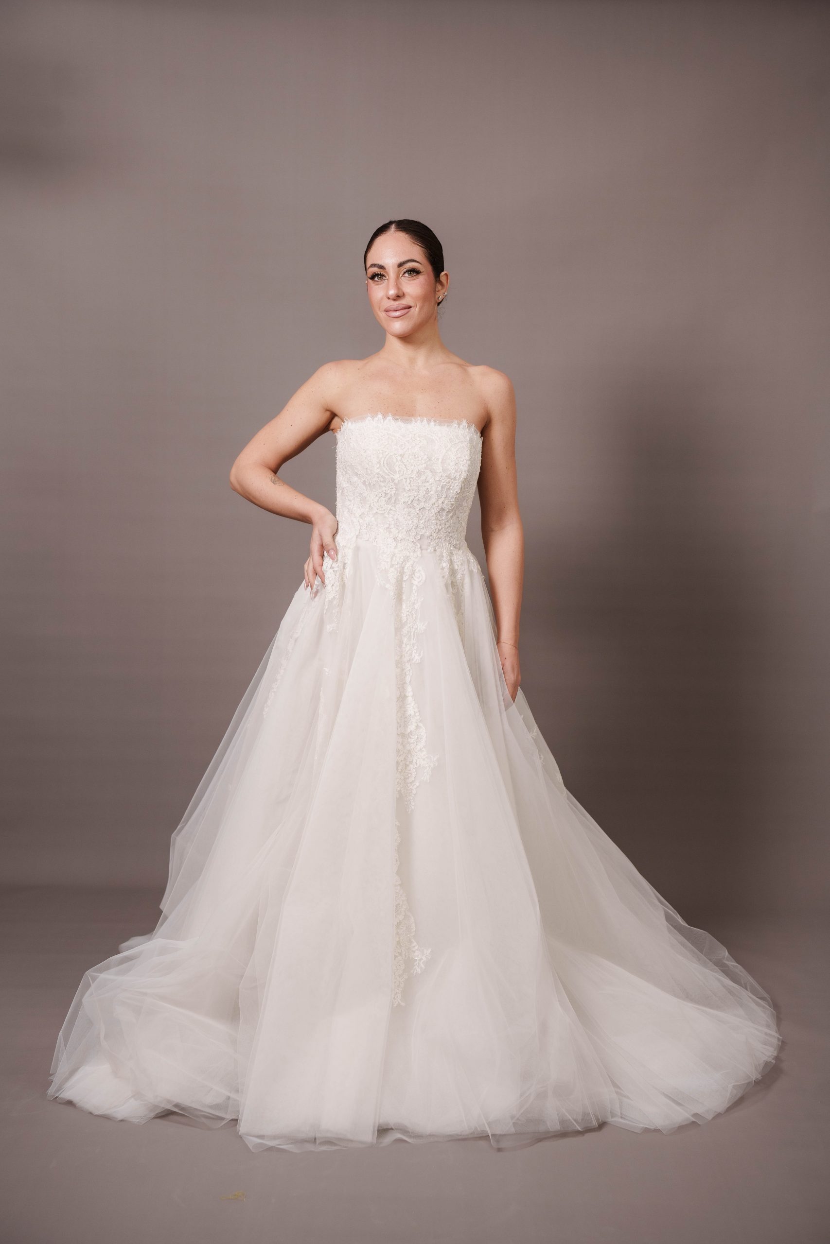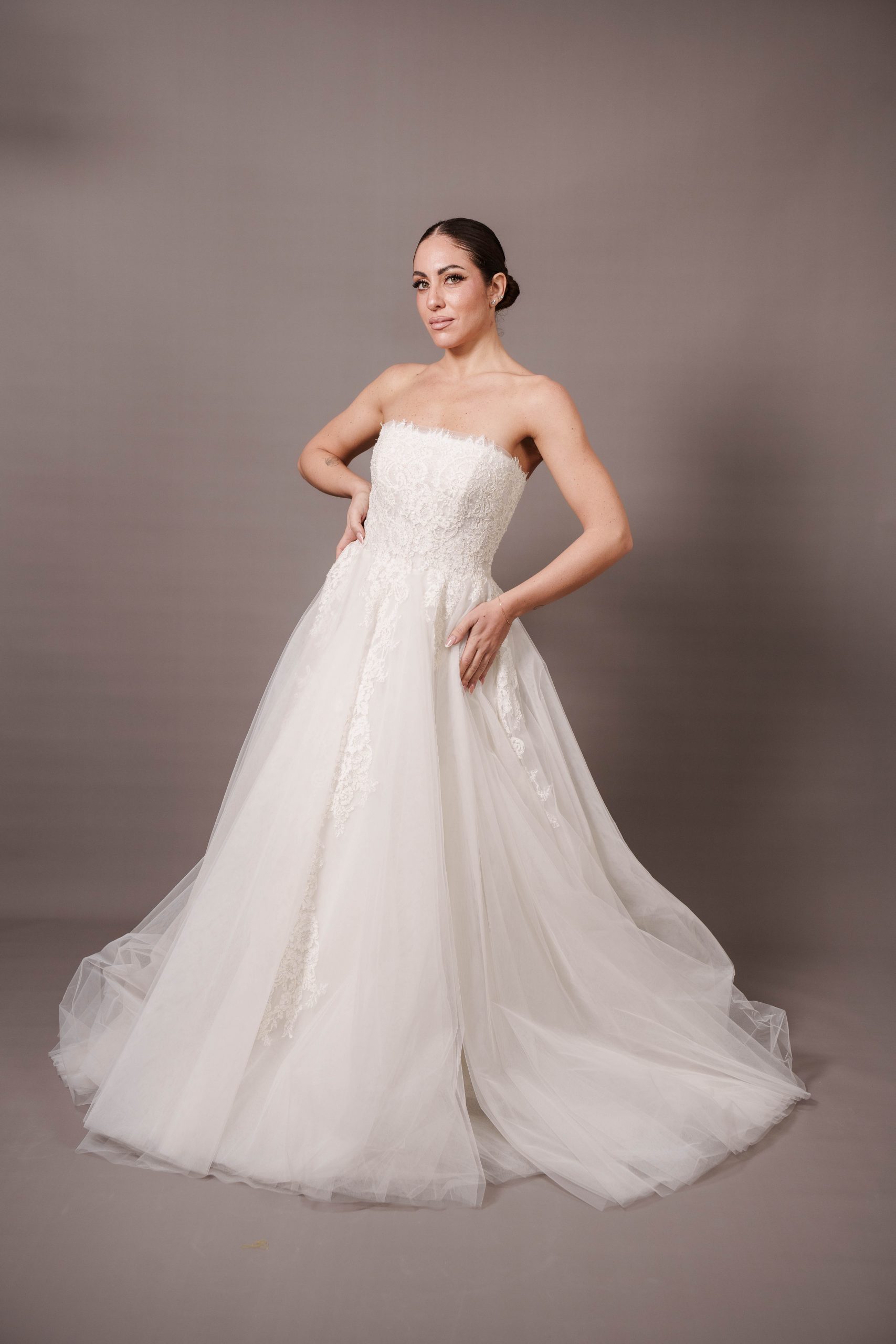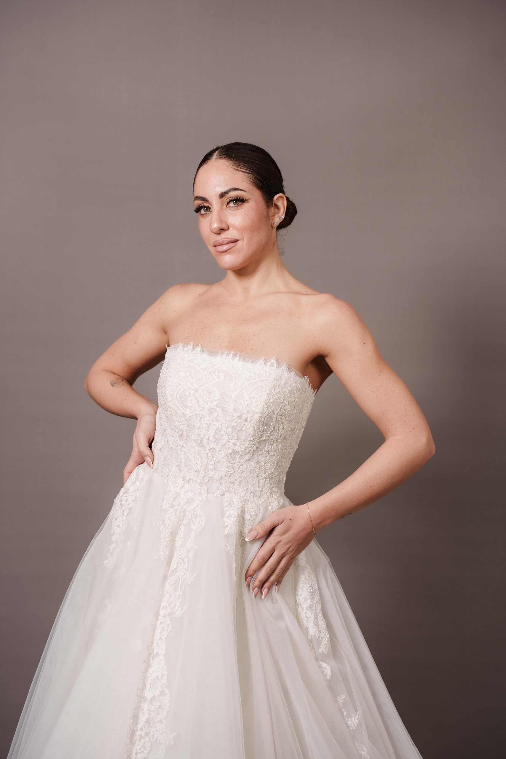 Taglia 46, per altre richieste, eventuali aggiunte e/o modifiche contattare l’atelier allegando la ricevuta di acquisto   Presenta un leggero ingiallimento del pizzo