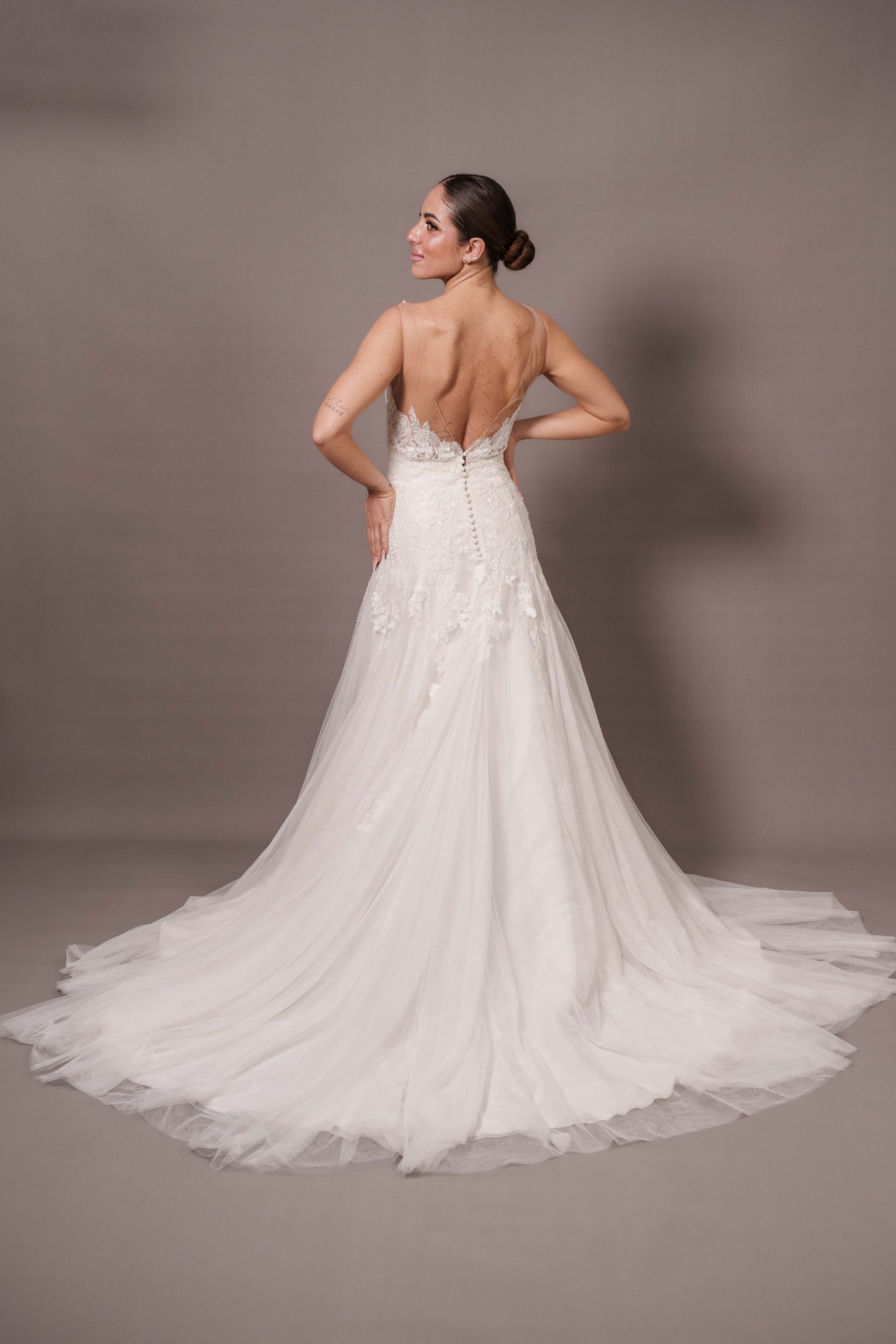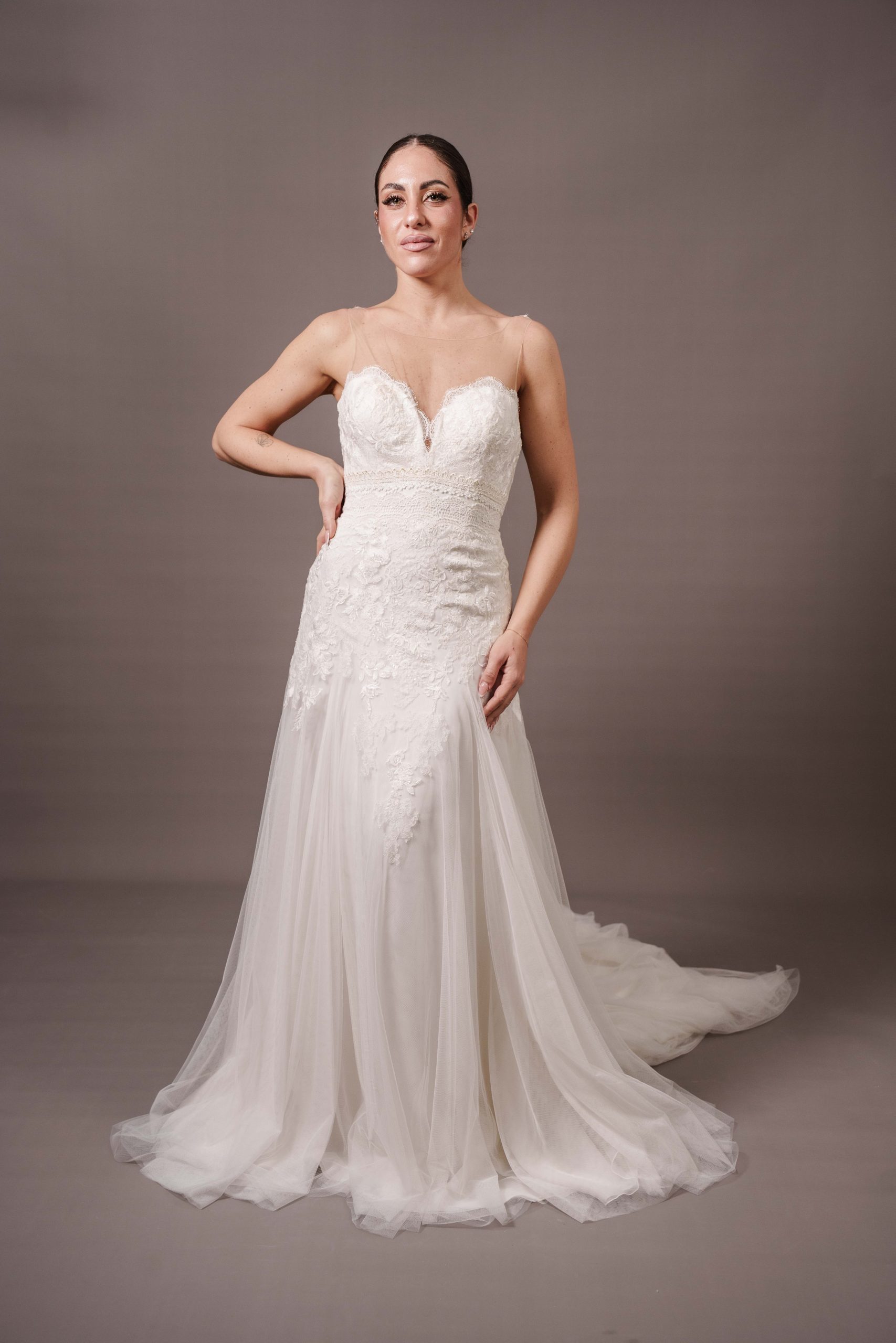 Taglia 46, per altre richieste, eventuali aggiunte e/o modifiche contattare l’atelier allegando la ricevuta di acquisto Presenta piccole imperfezioni sul pizzo